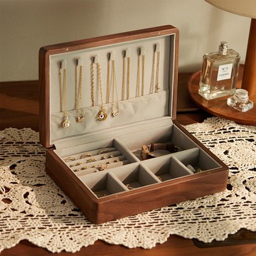 首飾盒 胡桃木雙層分類珠寶盒 大容量耳環飾品收納盒 禮物 可刻字