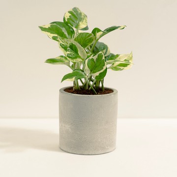 **白金葛│Epipremnum aureum│****◼︎ 植物介紹**屬於天南星科的多年生草本植物,濃綠的葉片,形狀為十分討喜的心型,並帶有不規則奶油白色的斑塊,形似雲朵的白色紋理,由於白色的比例較高,帶來純淨清新的感受。https://s3.ap-southeast-1.amazonaws.com/cdn.store-assets.com/s/809128/f/11111297.jpg**◼︎ 商品內容**植株高度:約21cm盆器規格:三寸六圓盆,直徑9cm、高8.5cm材質:白水泥包裝:紙盒包裝**◼︎ 光線指南**喜歡明亮的散射光,須避免被過強的陽光直射,以免導致葉片燒傷,影響它們的美觀。**◼︎ 澆水指南**觀察介質表面呈微乾狀態後,再一次澆透,需觀察實際狀況做調整。夏季時水分蒸散較快,可能會縮短澆水間隔。 **◼︎ 推薦加購**特製通用介質https://www.pinkoi.com/product/5Ry7zgRuhttps://cdn01.pinkoi.com/product/5Ry7zgRu/1/800x0.jpg *小提醒:由於農場大規模栽培,難免會有些許葉傷,出貨時會盡量挑選,但無法確保葉片零瑕疵,可以接受再下單喔!https://cdn02.pinkoi.com/product/F89jzNAi/0/1/800x0.jpg