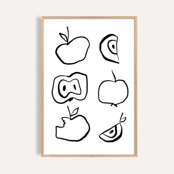 ・本商品不含畫框,實景圖中的相框僅作為情境示意參考・如欲搭配畫框,加購連結 👉 https://www.pinkoi.com/product/8NNEay6t《蘋果習作 Apple Studies》以簡單線條反覆描繪整顆、切面與咬痕的蘋果形態,畫面像是一頁隨筆練習,保留了不完美卻真實的生活感。黑色線條搭配大量留白,使作品特別適合懸掛於廚房、用餐角落或輕食空間,在日常準備餐點、泡咖啡的時刻,帶來輕快而不干擾的視覺陪伴。本作品為純畫芯輸出,採用專業藝術相紙呈現筆觸質感與線條層次(不含畫框),可依空間風格自由搭配木質或細邊框,輕鬆融入現代居家與北歐風格空間。· 300dpi高畫質輸出,細節清晰,色彩溫潤飽和· 選用布面專業藝術相紙,質地細膩不反光· 純畫芯作品,讓您自由搭配喜愛畫框· 接單訂製,生產、包裝、約3–5天內出貨· 因螢幕顏色設定差異,色彩請以實品為準· 展示畫面為情境示意參考,商品本身不含畫框· 為什麼選擇『純畫芯(專業藝術相紙輸出/不含畫框)』?我們提供高質感布面專業藝術相紙輸出,讓你可以依個人喜好,自行挑選裝裱最適合自己空間風格的畫框,無論是極簡白框、復古金框或自然木質,皆可展現不同的氣氛與美感。購買純畫芯讓您能自由搭配各式框型與空間風格,增添個人化氛圍,打造屬於自己的藝術角落。也可至 IKEA 等通路挑選現成相框搭配,美觀又經濟實惠。由 硬石製畫 Ins Design 精選策畫,讓每一幅藝術掛畫成為你情感的風格展現。Ins Design Your Life|浪漫你的生活時光。