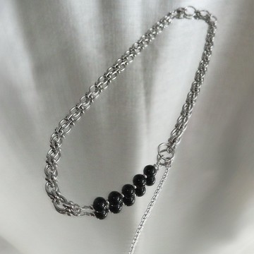 中性側擺黑珠造型項鏈 Unisex Black Beads Necklace