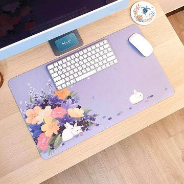 多用途 餐墊 桌墊 滑鼠墊 - 粉紫白兔