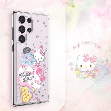 三麗鷗 S25/S24/S23/S22 輕薄軍規防摔水晶彩鑽手機殼-冰淇淋凱蒂