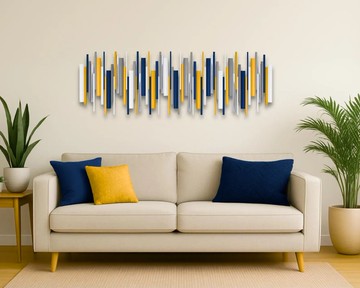 手工製作 深藍色 淺赭色 白色 與 灰色 木質牆面藝術 鉻金屬裝飾