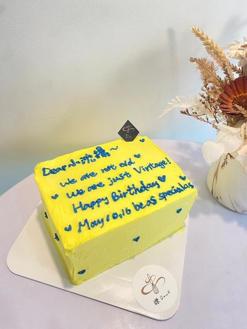 ⚠️⚠️ 請細看內文 ⚠️⚠️❗️此處只提供作品參考,不出貨。如需下單,請私訊店家。❗️限自取❗️此蛋糕無法宅配(宅配僅限提拉米蘇/慕斯蛋糕 系列),選擇宅配一律不出貨。❗️ 可提供自取、外送(限雙北地區)⚠️急單需加收費用請於五天前預訂5天內為急單1-3天為緊急單無現貨供應❗️若直接下單,則無法出貨,店家將無義務致電給您。❗️若下單急單蛋糕,請自行聯絡店家進行確認。無自行聯絡店家者,將無法出貨。🔔🔔🔔🔔甜點/蛋糕類宅配必有風險,過程中若有損毀無法退貨請見諒,下單表示您願意承擔風險🔴請詳讀以上相關注意事項,下單表示您願意並同意以上宅配風險以及急單處理方法。👆👆👆下單前請熟讀商品內文❗️ 所有皆沒有附餐具,請至賣場尋找『餐具』🤗️私訊訂製您專屬蛋糕吧🤗️所有蛋糕皆可客製化,依裝飾難易度可能導致價格上的調整4吋適合1-4人6吋適合4-8人8吋適合9-14人10吋適合15-22人🤔️有選擇困難或者懶得決定口味的,可以參考以下內文。蛋糕體:伯爵紅茶蛋糕體內餡:香草卡士達+布丁裝飾:長方形、寫字尺寸:6吋蛋糕上的字:Dear小沈揚~We are not old,We are just Vintage!HAPPY BIRTHDAY ❤️(愛心一樣是藍色的)--------------------------------------------蛋糕體:香草口味內餡:香草奶凍+當季水果裝飾:長方形、寫字尺寸:6吋寫字(Fine. Go. Good Luck (crossed fingers)Finding more talented coworkers than us.)注意事項收到蛋糕後[冷藏]3-5天為最佳賞味期綜合水果依季節變換指定內容物為客製化 需重新報價🔔🔔🔔🔔甜點/蛋糕類宅配必有風險,過程中若有損毀無法退貨請見諒,下表示您願意承擔風險所有蛋糕皆可客製化,依裝飾難易度可能導致價格上的調整中山晴光門市資訊(僅供外帶)每週二、三、四、五、六時間:10-17地址:台北市中山區雙城街3巷11-1號5F小巨蛋中崙門市地點:松山區八德路三段74巷41號小巨蛋捷運站3行出口往北寧路走5-8分鐘平日營業時間:10:30-18:30假日營業時間:10:00-19:00附近停車場:Beining Rd. Car Park取貨/上課 可討論調整