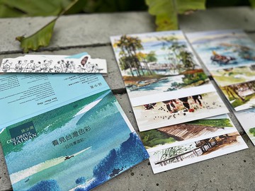 資深水彩畫家孫少英-【看見台灣色彩—日月潭遊記】Colorful Taiwan Sun Moon Lake 整套明信片有日月潭著名景點: 涵碧步道、梅荷園、水社大山、自行車步道、 纜車起站、萬人泳渡、浮嶼間的四角網、伊達邵杵音舞等。 獨創觀光客立架可將明信片如畫般展示,隨時回味。