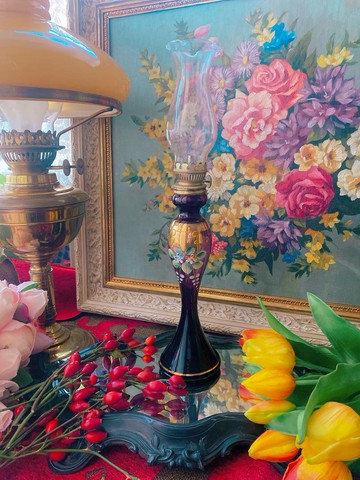 ♥~產地: 義大利♥~年份: 約1930年代♥~尺寸: 高34cm♥~狀況:1920年代 手工手繪捏花24k 金鑲金邊美麗浪漫的紫色系古銅鐵件完整美麗❤️高34cm庫存品無使用過功能正常品項乾淨無裂縫缺角使用時請小心火燭♥~好消息~“安妮瘋古物“的粉絲團已經在 FB 成立嚕^^~只要在FB收尋“安妮瘋古物“,然後進去按個贊,就可以同時與同好朋友分享收集古物的樂趣呦~歡迎加入“安妮瘋古物 成為古物尋寶的團員之一喔^^~下標前請閱讀關於我,謝謝 ^^~拍照商品難免有色差.古董全手或半手工器具非現代機器模製商品來的完美.且多少會有歲月的使用痕跡. 但古物的迷人處也是現代機器模製商品所無法呈現滴.下標前請詳讀商品圖片及說明.對商品要求完美的買家,請在下標前仔細考量.我很樂意回答任何對商品的疑問.Thank you for visiting me here and hope everyone enjoy your shopping here♥ ~ Annie Shih ~♥