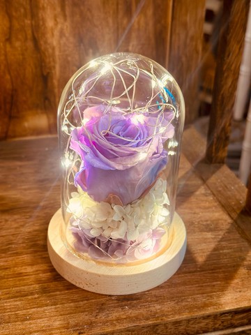 永生玫瑰玻璃盅罩 紫羅蘭顏色 大輪厄瓜多玫瑰 小夜燈款