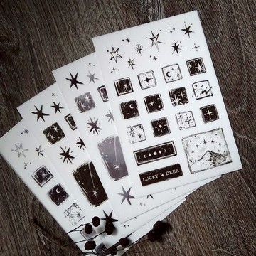 星星 ! 好想畫星星 ! 好多好多的星星 ! ⭐️諸君 ! 我把對星星們的怨念都做成感壓貼紙了 !設計了開放式(?)的星星,和相對封閉(?)的偽 icon 設計,兩種設計的交錯,讓整體在呈現沒有那麼無聊了~~( 但星星本人就是實用啊 !!! XD )圖案設計有兩種,私心做了純黑版,再染了一個紫色渲染版,一組總共是 4 張 ~帶回家就可以成為閃亮的星星富翁唷 ! 😆實際轉印到紙上,真的超級療癒的~跟以前做的貼紙是不同領域的感動 !彷彿畫上去的一樣///單張尺寸 : 10 x 15 cm一款 4 入