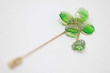 象徵幸福的四葉草被製成帽針。閃閃發光的心形施華洛世奇代表三葉草的葉子。由於設計簡單,請用作帽子、攤位、襯衫等的胸針。○ 關於本作品・浸藝術・施華洛世奇三葉草大小約 2.1 x 2.1 厘米,針長約 5.2 厘米