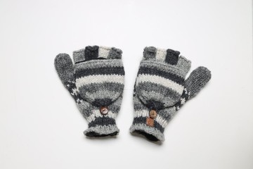 翻蓋手套費爾島民族圖騰灰色純羊毛線手工編織搖粒絨內襯|北歐風