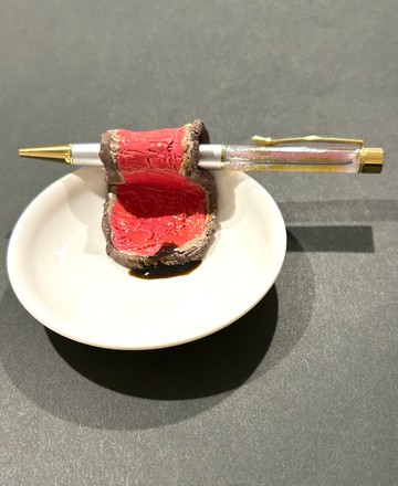 這是聖誕節限定作品。此為原子筆與烤牛肉造型小物置物架(筆置)的組合。【原子筆】這是一款在聖誕色彩中,融入閃耀亮粉的瓶中植物(Herbarium)風格原子筆。亮粉隨之舞動,十分可愛❤️無論是贈禮或犒賞自己,都是絕佳選擇。請於選項中選擇原子筆顏色及是否需要替芯。【原子筆本體顏色】粉紅、黃、白、黑、銀、藍(淺藍)、綠、紫、紅、灰、橙、棕(駝色)、靛(深藍)請從選項中選擇。※所有墨水顏色皆為黑色。【材質】仿甜點:樹脂黏土原子筆本體:鋼、壓克力樹脂、矽膠【尺寸】長度:約 14cm※由於為手工製作,每一個作品的質感與色澤可能略有差異。※本品易碎,請勿使其掉落或施加過強的力道。※請避免將其置於陽光直射處保存。※若需更換墨水,請向下拔出筆頭。※仿食品部分與筆身連接處,已以膠水固定。※由於尺寸上的些微差異,仿食品的配置可能有所不同。※筆尖等部分為銀色與金色。將隨機出貨,敬請見諒。這款烤牛肉造型小物置物架,令人不禁想咬一口。也可作為筆的置物架。烤牛肉由樹脂黏土製成,醬汁則以寶石樹脂(Resin)製作。【尺寸】盤子直徑約 10cm【材質】盤子:聚丙烯烤牛肉:樹脂黏土醬汁:寶石樹脂(Resin)【注意事項】※本品易碎,請小心使用。※請避免置於陽光直射或高溫處保存。※由於為手工製作,可能與照片略有差異。※寶石樹脂中可能含有灰塵或氣泡,敬請見諒。※購買前,請務必確認注意事項等相關資訊。