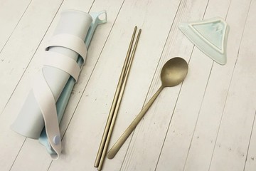 健康於筷 Togo餐具組 煙灰藍 (短款筷子、湯匙、外出盒)