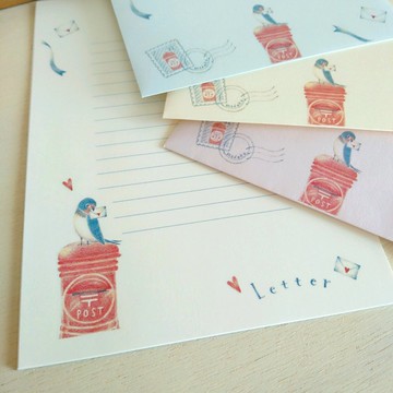 充滿溫柔色彩的信箋組,點綴著鉛筆繪製的插畫。燕子與復古紅郵筒的可愛身影,以別緻的紅藍雙色調呈現。是您書寫心意、傳遞溫暖的最佳選擇。【內容物】信箋6張 / 信封3個信封共有柔和的粉紅、淺藍與奶油色三種。【尺寸】・信箋:A5 (210 × 148mm)・信封:110 × 155mm●關於信封尺寸足夠放入明信片。每個信封皆為手工精心製作。