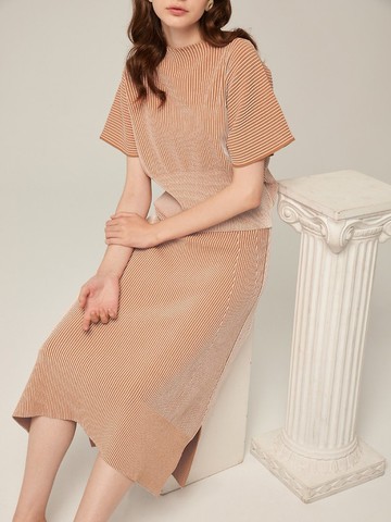 採用特殊梯形輪廓設計修飾臀型,以橫織技術呈現立體直紋配條,並具有不同角度的色彩變化,整體呈現俐落風格。可成套搭配同材質直紋短袖上衣,更能凸顯系列設計感。上衣搭配https://www.pinkoi.com/product/uKJnTgnb