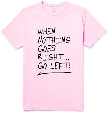 When Nothing Goes Right...Go left.中性短袖T恤 淺粉紅色 文青