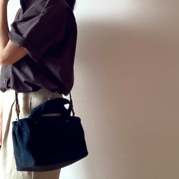 2 way 附肩背帶 抓褶托特包 Mini 黑色 8 號帆布 托特包 小包