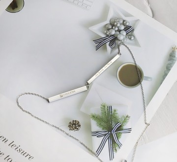看似簡單的外表其實內在隱藏著一句只屬於你/妳的密語,而那是我和你/妳的小秘密。項鍊的外框與內長條皆可客製刻上文字,成為最特別的秘密訊息。**|| 免費雷雕刻字服務 ||**若若需刻字服務,請在下單時在 **[給設計師的訊息或注意事項]** 備註**[ 客製刻字:刻字位置、刻字內容、字型代號 ]****若未備註刻字內容,設計師將以未刻字的品項出貨。設計師會依據提供的內容來調整雷雕大小,若內容太長可能會影響呈現出來的大小及效果。請記得參考提供的建議字數來做刻字喔!**| 客製化內容 |** 請留言備註以下內容1. 刻字位置:項鍊外框、項鍊內長條*兩處皆提供免費雷雕1次2. 刻字內容:兩處皆建議英文或數字含空格15字內*項鍊外框有一面會刻有Chulena的Logo*項鍊內外長條的粗細不同,刻出來的字也會有不同大小,若希望內外字體一樣大請在備註一併提出,如未標明將以設計師覺得最適合的尺寸來做刻字3. 字型代號:例--C3 [字型代號請參考商品照最後一頁]**若未備註字型編號將以C9字型進行刻字出貨。****備註範例**項鍊外框:Vivian / C14項鍊內長條:Forever Love / C3**|| 商品規格 ||**材質:不鏽鋼尺寸:總長48.5cm顏色:銀色| 另有金色可供挑選 |https://www.pinkoi.com/product/9fz6XS5X**|| 送禮包裝 ||**Chulena丘萊娜會將每條手鍊各別包裝進精美禮盒,讓收到手鍊的每個人都能有打開禮物的驚喜感。**|| 平時保養方式 ||**• 平時洗手配戴噴到水都是沒關係的,擦拭後放置陰涼處自然風乾即可。• 真皮飾品請勿長時間泡水,洗澡、游泳、泡溫泉,或運動流汗時請記得取下。• 請注意避免接觸含化學成分的液體,如:化妝/保養品、香水、清潔劑等。• 鋼飾品可在配戴後用溫水沖洗,並用柔軟的棉布或麂皮布擦拭至乾燥。• 收納時建議將飾品各別放入密封袋或盒內,以避免五金互相摩擦,並放在陰涼乾燥的地方。**|| 下單注意事項 ||**• 下單付款後開始製作,平均**2-5個工作天**完成並出貨,若有急需送禮的需求可先 ** [聯絡設計師] ** 詢問。• 手作商品可能會有些許痕跡或刻痕,請確定能夠接受再下單。• 任何電鍍商品都可能隨時間退色,磨損掉色皆為正常使用現象。• 因各人螢幕顯色不同,拍攝照片與實際商品可能會有色差,請確定能夠接受再下單。• 客製化商品無法退換貨。商品上有刻專屬文字或有變更規格尺寸大小之商品,皆屬客製化商品。• 有客製化刻字的商品屬「例外商品類別」,不適用7天鑑賞期法規,非商品本身瑕疵問題恕不退換。**|| 產地:台灣 ||**
