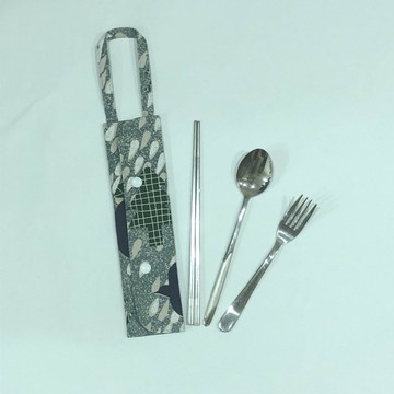 提把環保餐具套- 天藍大花普普風