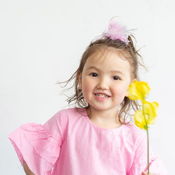 為兒童出門增添輕盈可愛色彩的咲編髮夾。從嬰兒到女高中生都能享受!以可愛配色與實用尺寸設計開發。為了能安心佩戴去學校或幼稚園,完全不使用珠飾或金屬片!女孩最愛粉紅色!!輕盈柔美的粉紅色讓人開心到想跳舞!盡情享受最愛的粉紅色吧。<顏色>粉紅×淡粉紅髮夾:粉嫩粉紅<尺寸>髮夾:4.8cm蓬鬆部分:5~6cm含蝴蝶結最大部分:7~8cm<材質講究>輕盈蓬鬆的咲編,源自於歐根紗。歐根紗是一種輕薄挺括的平織布料,透光性賦予獨特的柔和氛圍,上質的透明感營造清透質感,獨特的光澤與彈性是其特色。經過各種布料的試驗後,chiko選用強度高、品質穩定的聚酯纖維歐根紗。<咲編髮夾的髮型變化>不擅長整理頭髮的媽媽、爸爸也沒問題。即使孩子無法靜止不動也沒關係。非常輕盈,連不喜歡髮飾的孩子也會忘記佩戴著!◯ 夾住瀏海◯ 在耳朵上方俏皮地夾上◯ 用橡皮筋綁好的小髮髻上夾上◯ 夾在媽媽的化妝包上各種玩法等你發現,我們也在Youtube和Instagram分享造型提案!<咲編商品的特色>◎為你的日常出門增添「恰到好處」的美感透光的歐根紗,完美融入每天的穿搭和出門場合。光線交織出的色彩變化,展現多樣表情。即使家人朋友共用,也能各自展現不同風采!◎看似纖細,其實非常堅固歐根紗不會褪色,可以長久使用。紮實的編織工法,即使在電車上擠壓、放在包包裡也不會變形或鬆脫!就算遇到下雨天淋濕,蓬鬆感依然不變。請安心享受每一次出門!<咲編商品使用注意事項>因採用裂布編織製作,會有些許毛邊。使用初期可能會有細毛掉落,但隨著使用次數增加,纖維會漸趨穩定不易脫落,請享受這份獨特質感。若有髒污,可用按壓方式水洗。自然晾乾後蓬鬆度即可恢復原狀!