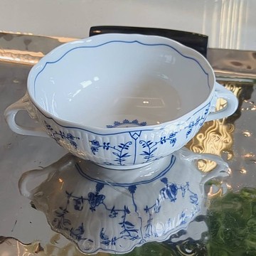 **特色:寬13公分的雙耳碗,可作爲湯碗或是沙拉碗,本體細緻的條紋造型,手工製作提耳設計,碗底的圖紋是設計師的巧思,整體溫潤感並帶有細緻的雕刻,柔美清新的唐草圖紋,塑造氣質優雅的用餐氛圍,新婚圓滿成家送禮,圓圓的碗、滿滿的心意**擺盤:飯、湯適用:烤箱、微波爐、洗碗機**【商品尺寸 / 產地】**寬:13 cm高:6 cm容量:300 ml產地:捷克**庫倫洛夫古堡清新系列**百年餐瓷手作職人經典工藝,融合東方唐草與西方時尚,圖案以蠟菊為主,細緻的浮雕交織出清新淡雅的線條,優雅而柔美,彷彿身歷庫倫洛夫的童話古堡,走進耐人尋味的幽谷秘境。您可以搭配任何中西式料理或點心,讓餐點成為一篇浪漫動人的童話故事。**藍洋蔥工藝**瓷器最早在18世紀由中國傳入,西方人認為的藍洋蔥圖案其實是我們熟知的石榴花,加上其他東方式圖案,例如菊花、桃子….都富含福氣、富貴、長壽的意涵。藍洋蔥圖案原料是”鈷” ,描繪時的原色是綠色,上釉後經過1450度燒過之後,才轉為藍色,流傳將近300年的亙古經典。https://live.staticflickr.com/65535/52213588940_6f79474183_z.jpg**【包裝說明】**1.每件商品皆單獨精美紙盒包裝,紙盒為捷克原廠,可直接滿足您的送禮需求。https://live.staticflickr.com/65535/52213187436_d8d6cda5ca_z.jpg2.免費贈送 捷適家居Jaysys Living 精美紙袋一只。https://live.staticflickr.com/65535/52212180822_90e0bcefdd_z.jpg3.商品連同外盒將以氣泡袋密實包裝保護及牛皮紙箱封裝,確保商品完好無缺。**【溫馨叮嚀】**1.部分商品為手工繪製與雕塑,每件商品顏色及筆觸細節皆有非常細微的差異,更顯得獨特。2.捷適家居盡力呈現產品實際顏色及紋路,基於使用電腦、手機等顯示裝置、及拍攝環境光線不同,可能會有些微色差。3.產品尺寸與介紹均清楚標示於產品頁面中。