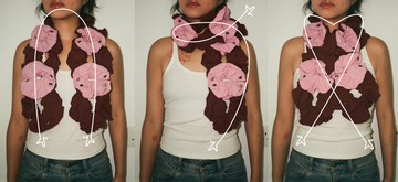 粉紅拼啡色大褶髮圈束圍巾(三色)