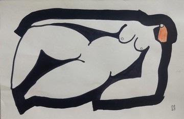 立姿女性裸體抽象畫 壓克力、墨水繪圖