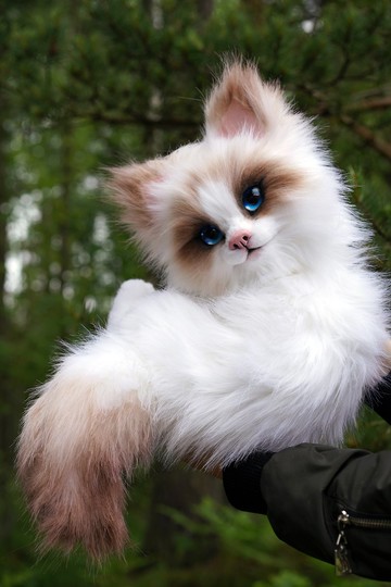 坐姿時約 45 厘米,從鼻子到背部(不含尾巴)約 35 厘米。- 完全手工製作。- 玻璃眼睛。- 電樞。完全可以。- 臉部、爪子由聚合物黏土製成,並用粉彩著色或覆蓋人造毛皮。- 由高品質人造毛皮製成,塗有壓克力顏料。- 不能水洗。- 僅限成人收藏家。不適合兒童。
