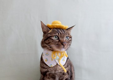 【草帽・麦わら帽子】寵物飾品 貓咪/狗狗 - 黃色絲帶花邊帽子