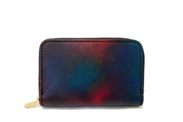 手染皮革 藍綠色極光 迷你短錢包 短夾