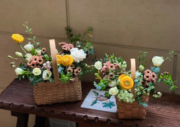 鮮花提籃設計🏷️商品尺寸:S. 長22*寬15*高22 公分M. 長32*寬18*高28 公分🏷️此款鮮花提籃請提前七日預訂或先聊聊您希望的出貨日期時間⚠️主要以拉拉快遞出貨為主或宅配🏷️花材:餅乾太陽花、大康、桔梗、雪柳、蘋果花、尤佳利葉…等等,若遇季節或氣候因素花材短缺,請接受由設計師幫您更換其他花材。🏷️鮮花觀賞期約3-5天,需每日於中間海綿注水約100-150c.c🏷️因每個自然花材本身姿態都會有所不同或差異,請理解不可能每件作品都會與照片完全一模一樣,若有特殊尺寸或其他色系之需求都歡迎私訊討論🏷️ 自取地點在永和頂溪捷運附近更多花藝作品歡迎參考IG: 艸心 花藝與繪畫工作室IG:艸心handcraft_by_xy