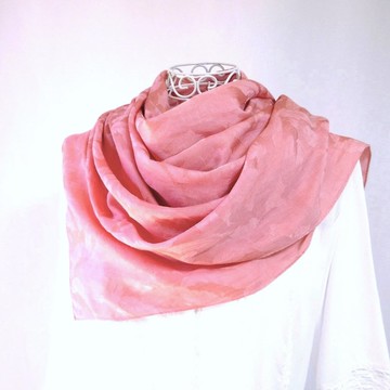 這款絲棉混紡(絲綢50%、棉50%)的圍巾,採用茜草植物染料精心染色,散發著清新的氣息。細緻的羽毛圖案遍佈其中,隱約透出柔和的白色光澤。圍巾尺寸約為61公分 x 160公分,重量僅60公克。質地滑順,略帶厚度的寬版設計,不易透光,非常適合在微涼的日子裡,作為調整體溫的良伴。結合了親膚的絲綢與優異的吸濕性棉質,讓您倍感舒適。染上如珊瑚粉般的色澤,隨意繞上一圈,便能展現如花朵般綻放的迷人氛圍。這是一種介於橘色與粉色之間的奶油般柔和色彩。無論何種年齡,都能為您的膚色增添一抹明亮光彩。敬請把握機會,體驗來自大自然的贈禮,沉浸在這份自然而溫柔的色彩之中。◇「一般寄送」服務亦會妥善包裝後寄出。◇提供免費的禮品包裝服務。請透過交易訊息與我們聯繫。◇我們會在寄出前,以蒸氣熨斗整燙完成。◇寄出後,我們會提供「追蹤號碼」供您查詢。◇植物染料中,多種植物性多酚相互作用,因此發色效果與化學染料不同,無法達到完全均一的色彩。在陽光、日光燈等不同光源下,色彩可能會略有差異。◇購買者將會獲贈「保養說明書」(備有日文與英文版本)。◇若有任何疑問,請隨時透過訊息聯繫我們。※本商品亦於其他平台販售。萬一發生訂單重複購買的情況,我們將會與您聯繫,並以購買時間較早者為優先出貨。敬請見諒。____________________寬度:約61公分長度:約160公分重量:60公克材質:絲綢50% / 棉50%染料:西洋茜____________________產地 / 製作方式日本 / 手工製作◎採用100%天然染料染色。◎ 草木染可能會有輕微「褪色」現象。◎ 請單獨輕柔手洗。◎ 請避免使用洗衣機、烘乾機、漂白劑或含漂白劑的洗劑。◎ 建議在家中單獨輕柔「手洗」。請使用少量「中性洗劑」(如衣物柔順劑),輕輕按壓清洗。輕柔地衝洗兩次,用毛巾吸乾水分,整理好形狀後,於陰涼處晾乾。熨燙時,請使用中溫,並隔著布熨燙。◎草木染料長時間接觸陽光、柑橘類汁液、汗水,或隨著時間的推移,顏色可能會逐漸改變。請理解這是自然的變化。◎若長時間將圍巾摺疊收納於明亮處,摺疊處可能會因日曬而產生色差。不使用時,請收納於不受光線照射的地方。◎若需長期保存,建議與「乾燥劑」或無香料的「防蟲劑」一同保存。(購買注意事項)※所有商品皆為手工製作。請理解每件作品在顏色和形狀上可能會有細微差異,皆為獨一無二的存在。※購買前,請務必仔細確認商品的「尺寸」與「材質」。※螢幕顯示與實品可能存在色差。※採用100%天然染料,手工染色,每件作品的顏色可能會有細微的色差,敬請見諒。※若有任何疑問,請隨時與我們聯繫。