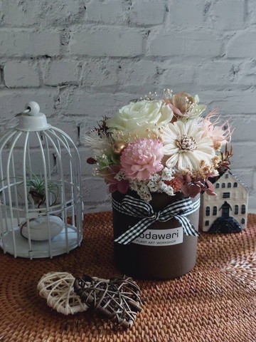 ※ 關於商品商品名稱: 四季風景商品尺寸: 10X10X18公分商品內容:盆器: 選用莫蘭迪色消光霧面圓桶陶瓷花器 (表面可能有些微落漆為正常情況)花材: 使用永生花.索拉花及部分乾燥花※ 關於出貨運送方式: 此為小型商品,運送可選用宅配或7-11.全家包裝流程: 不加購禮盒: 以緩衝材包覆並固定於紙箱,避免盆花在紙箱內移動加購禮盒: 將商品固定於加購的透明花盒包裝後,放入紙箱,以填充物塞滿紙箱,避免花盒在紙箱內移動※ 注意事項1.商品照與實際收到商品可能因光線.手機.螢幕等存在些許色差2.開箱時請全程錄影,以保障彼此的權益3.寄送過程皆有風險,若有些許花材掉落為正常情況4.訂購前後有任何關於此商品的問題都可詢問5.收到商品後避免放置於陽光直射或潮濕之場所,以延長觀賞期限,若保存得宜,有一至兩年觀賞期6.當您收到商品如有任何問題,先別急著給不好的評價~請先與我們聯絡,讓我們盡速協助您解決,誠心希望您收到商品後,能給予好評價肯定我們喔!下圖為透明花盒包裝示意圖https://live.staticflickr.com/65535/54131115226_47daff3668_b.jpg