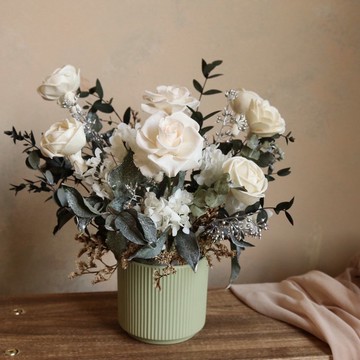 玫瑰花 Roses白玫瑰在梵谷眼裡,是美好與純粹的化身,帶著療癒與情感的力量。靈感源自梵谷的白玫瑰,純潔的花瓣如同內心的寧靜,化作不凋的盆栽,將希望與美好常駐空間裡。▪️凡購買花禮皆附空白小卡一張▪️宅配出貨時以專屬護花盒包裝寄送更安全如門市自取皆附品牌提袋花材:進口永生玫瑰、不凋繡球、索拉花、雪花、小米果、小尖葉、尤加利葉商品尺寸: 盆栽含葉總寬約28公分 總高約28公分出貨時以專屬護花盒包裝寄送更安全另可加購提盒送禮誠意大方!https://live.staticflickr.com/65535/53322404219_457758c878_w.jpg正常備貨時間皆設為7天▪️現貨商品3-5個工作天(不含例假日)▪️非現貨商品7~20個工作天(不含例假日)⚠️此為預設日期,並非確定到貨日實際收貨日請下單前先私訊詢問若有指定到貨日期也請私訊討論下標前請先詢問是否有現貨,手作商品售出即無法退換貨!每朵花都是獨一無二的,沒辦法每個商品都一模一樣唷。若您高度要求,請深思下單或請先訊息詢問喔!⚠️⚠️我們都會盡力保護好商品,但貨運運送過程,一定都會搖晃,因此花屑些許掉落,為正常現象!若您是希望一個花屑都不能掉落,有高度要求的貴賓,強烈建議您現場取貨,千萬不要冒險下單,以免造成雙方困擾⚠️⚠️【客製服務】若想要客製其他顏色,也歡迎私訊洽詢。【花朵保存方式】1. 乾燥花請置於乾燥通風的環境,盡量避免潮濕及陽光直曬。2. 乾燥花是真花經過風乾處理,基本可保存半年至一年左右,隨著時間會漸漸褪色凋落,是正常現象。3. 永生花是真花經過特殊技術製作保持鮮花色彩,不用澆水特別照顧,可存放時間更加長久。4. 若長時間而產生灰塵,用柔軟的刷子輕輕刷掉即可。5. 由於乾燥花是來自於自然的產物,每朵花的色調姿態都不盡相同。6. 現場採用當季新鮮花材乾製而成,如果遇到花材缺貨,會使用最適合的花材替代。7. 乾燥花、永生花為自然素材,請小心拿取避免碰撞而少許掉落,我們會盡力包裝避免掉落,也請您帶回家的過程中妥善保護喔。【實體櫃位面交地點】▪️高雄林森店 ( 高雄市新興區林森一路207-1號 )▪️高雄左營店 ( 高雄市左營區建業新村緯十一路20號 )▪️台南店面 ( 台南市中西區新美街192號1樓 )【聯繫我們】官方Line@ : @meetforever (含@)