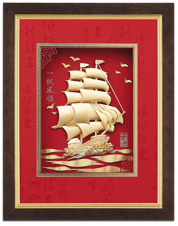 ** 一帆風順│ 開業開市、開幕喬遷、升遷榮調祝賀禮品 │雅鑑鑫品-立體金箔畫-鴻福系列 **https://cdn01.pinkoi.com/product/pmTgweBv/0/1/800x0.jpg **畫芯~傳統的剪、刻、捏、膠手法+上千人手工序嚴謹**https://cdn01.pinkoi.com/product/pmTgweBv/1/800x0.jpg **【創作理念】****999高純度金箔製作****金有吉祥喜氣可招來財運與人緣!**999高純度金箔.紙雕藝術創新構思+上千人手工序嚴謹製作!!! **一帆風順:** 一隻掛起蓬帆的船,它航行大海,順風千里--後世用以 祝福別人旅途或遠行順利 ,也比喻 人的 事業發展很快,前程一直非常順利 。https://www.mygifts.tw/images/pages/instruPW/630PW-ship-02.jpg**純金保證:立體金箔畫-堅持採用高純度金箔製作** https://www.mygifts.tw/images/pages/instruPW/630PW-gold-09.jpg**本件金箔畫經過許多工序。將畫面剪、刻、捏、膠等不同方法 ,每一步都凝聚著,創作者的靈感與創意,用手工技藝完成一幅美麗的金箔畫,演繹生活的傳奇。****【產品特別敘述】**https://www.mygifts.tw/images/pages/instruPW/630PW-ia3jian4-07.jpg**產品特別敘述****「藝術生活化」**一直以來都是我們所追求的目標,將傳統紙雕與高貴的金箔相結合、一直是我們的願望。我們經營團隊經過長時間的構思與研發,終於克服種種困難,推出立體金箔畫系列產品。製作一幅立體金箔畫比想像中難多了,需要花上很長時間。首先要經過嚴格選材、取材、創意構思,完成素描稿,確定整體效果,再經過立體思維方式,將畫面分割成數以千計小塊,並運用傳統的剪、刻、捏、膠等不同手法,再經過上千人手工序,嚴謹製作而成。立體金箔畫的每幅作品都是由經營團隊 - 台灣專業設計師精心設計而成,無論是畫面的安排、產品的表情、處處都能見到設計師的巧思而作品的文字、落款也都取自王羲之、顏真卿、趙子昂等名家手筆。在您欣賞作品之餘,亦能體驗博大精深的民族藝術。因此立體金箔畫不僅有很高的藝術價值和觀賞價值,更是您送禮饋贈的最佳選擇。**【所謂客製服務如圖所示】**https://cdn01.pinkoi.com/product/pmTgweBv/2/800x0.jpg **(圖片範例,商品以您購買為準)****貼心之語:**本公司出品金箔系列商品 純金保證── 堅持採用含金量達99.9% 高純度金箔製作。本產品為現代工藝使用之金箔,其價值在手工藝之美;如欲重新熔解還原為純金使用,不符成本,請勿信不肖業者之言。https://www.mygifts.tw//images/Pinkoi/116card630.jpg**(隨貨附中.英.日 【金箔工藝簡介】說明書)**https://cdn01.pinkoi.com/product/Ax2Yecrx/3/800x0.jpg**隨貨附中.英.日 【一帆風順】說明卡片**https://cdn01.pinkoi.com/product/DbZ7tcWP/4/800x0.jpg**畫框背面圖示-敬請認明防偽標籤!**https://www.mygifts.tw/images/pages/Card-17.jpg**附精美紙盒和手提袋**https://www.mygifts.tw//images/Pinkoi/Card-14_630.jpg**【商品資訊】**編號:2347B2633-01品名: 【鹿港窯】立體金箔-金箔畫-紅福系列【一帆風順】製造:高純度台灣金箔製作,金屬含量99.9%商品尺寸(cm):外徑 32.5x25.5厚度4.5 ±5%畫重量(g):800±5%包裝:精緻手工紙錦盒包裝尺寸(cm):33.5x26.5x4.8±5%總重量(g):1180±5%
