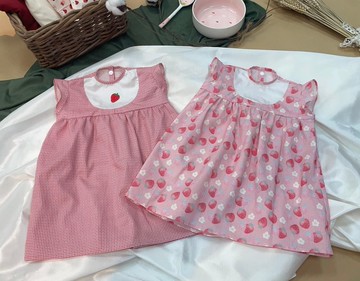 【台灣製手創】草莓純棉拼接背心裙
