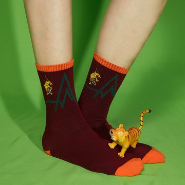 CONNECTION系列老虎刺繡輕薄透氣印花襪 男女尺寸