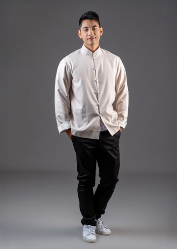 傳統工藝,新穎設計Qipology是一個香港設計師品牌,致力改良傳統服飾,在保留製作傳統旗袍所需的精湛工藝同時,以別出心裁的設計為旗袍注入新活力,讓中式衣著變得時尚不老土。關於設計這款男士唐裝外套由輕盈透氣的亞麻布料製成,內襯採用龍紋設計,是您衣櫥中的絕佳選擇。搭配直筒休閒褲和便鞋,完美呈現您的造型。面料:100%純棉顏色: 米色/ 香檳色