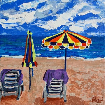 棕櫚灘繪畫海景原創藝術熱帶躺椅傘由 Marina 提供