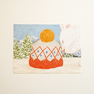 明信片 雪地裡的貓與毛線帽 聖誕卡