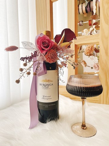 ☘設計館其他商品:https://www.pinkoi.com/store/misshuami☘實體店面資訊:新北市土城區中央路二段191號8樓之5週二-週六11:00-18:00(歡迎自取~請事先預約索取運費折扣碼!)花禮販售|花藝課程|咖啡輕食|企業合作https://live.staticflickr.com/65535/53136101520_5acab6acf5_b.jpg✿ Miss。花謎 花藝咖啡館隱藏在大樓裡的小秘境,為您的生活增添儀式感,在紛擾的城市中,每天扮演著不同角色,是否渴望有獨處的時間? 花謎在此邀請您,推開這扇門~放慢腳步、品味置身於花草中的愉悅吧!https://live.staticflickr.com/65535/53092780729_b4d130de9f_b.jpg✿本商品分為:「設計花款」若手邊已經有合適的酒,請拍照給花謎為您客製花的部分,請提供想要的花色/呈現的感覺/送禮對象或場合等,若沒有特別想法也可直接交由設計師為您搭配✿「美酒花禮」酒的部分會以商品照的紅酒為主,如有其他酒款需求請與設計師討論,寄送時花與美酒會『分開包裝』以免壓壞,收到後可將花直接套在酒瓶上,並可加購專用紅酒木盒✿本商品為綁帶設計,可作為酒瓶/禮盒/餐桌裝飾等,或繫於手腕上拍照【微醺之夜-酒瓶花禮】‧尺寸:寬約30cm(含花面)‧永生玫瑰、索拉花(可擴香)、骨架葉、金虎眼等‧容量:750ml【客製化】可提供顏色或想要呈現的感覺,若對設計上有任何想法,歡迎和設計師聯絡討論(價格可能因花材配置或大小而有變動)【永生花/不凋花】為真花採用特殊技法處理,保留鮮花完好狀態,不需澆水放置通風處、避免日曬,可存放1-2年,植物的型態/大小/開花程度等皆自然呈現,會有些微不同,且可能隨放置時間產生變化(逐漸風化或褪回原色),以上皆為正常現象,請理性看待花朵為手工染色,每一批花材在顏色上都可能帶有差異,每台電腦及手機解析度皆不同,難免會與實品有些色差(拍攝時會盡量拍出原色),恕不以此為退貨原因【注意事項】1. 為使產品擁有最佳保鮮期,花謎會於下單後開始手工製作,約1-3個工作天為您出貨,為維護製作品質,若需大量訂購或有急需請於下單前先與設計師聯絡,以免耽誤到您重要的日子2. 產品照片皆為實品拍攝,但因植物為自然素材、型態皆因其自然生長而不盡相同,無法保證每件商品會完全相同,若為完美主義者,下單前請三思3. 花材會隨放置時間逐漸風化或褪回原色,偶有花瓣掉落屬正常現象,請理性看待4. 如花材因季節性缺貨,我們將以保持色系、結構性為前提,會適當的為您調整花材5. 若您收到商品後有疑慮,請盡快與設計師聯絡,以儘速為您解決問題【保存方式】請放在乾燥通風處,並遠離陽光直射若長時間放置產生的灰塵,可使用軟刷毛輕輕刷除保存良好基本可放置1年以上,會隨著時間自然風化或褪回原色為正常現象【官方line】@bcc5895i