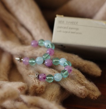 老又好古董珠寶夏日透光珠C形圈圈針式耳環 P280