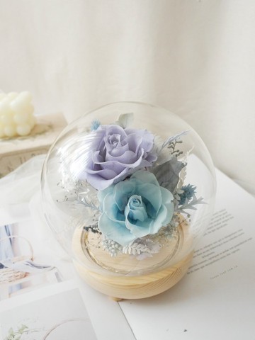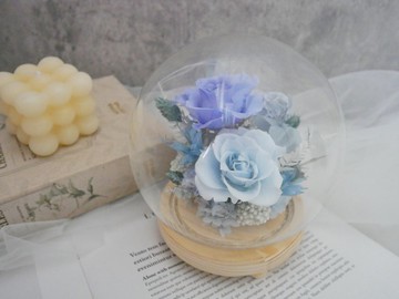 不凋花玻璃罩夜燈【寒冰灰藍】永生花/新婚/七夕情人節/畢業禮物