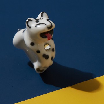 【常玉系列-雍豹戒指(笑)】喜報頻添 捷報連綿雍容矜貴 可圈可點 化成繞指柔 心尖 好甜常玉生於四川,長年旅居法國,畫作以中國水墨畫為基礎,但在技法方面卻使用西方油彩。其中西合璧的風格深受收藏家喜愛,藝術界稱其為東方的馬諦斯常玉晚期以畫動物為主,主要是受到他父親熱衷於畫馬的影響,常玉的風景畫經常將動物當成自身的投射,藉由動物的神態來抒發自己的心情。https://live.staticflickr.com/65535/51297383366_76a2fcdfcd_b.jpg花豹,又名金錢豹,皮毛上的黑色斑點是最佳保護色,休憩時像隻大貓,身軀柔軟、體態優雅,看似嫻靜,實則敏捷大膽,常出現在常玉作品中。設計師將其環成兩款戒指,嬌憨神情萌化心田。豹的斑紋鑲水鑽點綴,鑽豹諧音賺爆,讓豹兒滿載祝福,在您指間增添光芒。https://live.staticflickr.com/65535/51297560238_c8edb43a87_b.jpg【產品規格】◆尺寸:44x18x36(mm)◆戒圍:17mm◆材質:瓷+水鑽◆包裝方式:咖啡色牛皮盒◆製造方式:手工+機器◆製造地:台灣設計+中國製造【貼心主張】1.鮮明釉色,不含鉛、鎘,以1250°C高溫燒成,通過國際SGS食用器皿級標準檢驗。https://fs1.shop123.com.tw/300184/upload/harddisc/3001840_file_563241334408112020032344.jpg