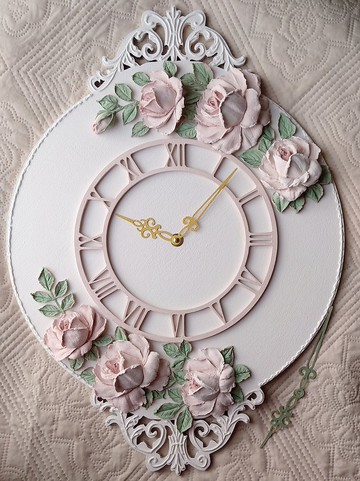帶有粉紅玫瑰的小粉紅色掛鐘 破舊別緻的裝飾 靜音掛鐘 禮物