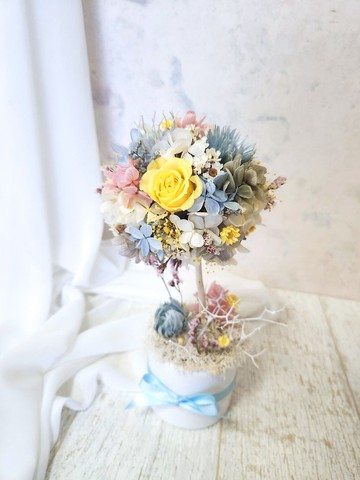 花球小樹 奶油糖酥色 生日禮物 桌花 開幕盆花 永生花 乾燥花