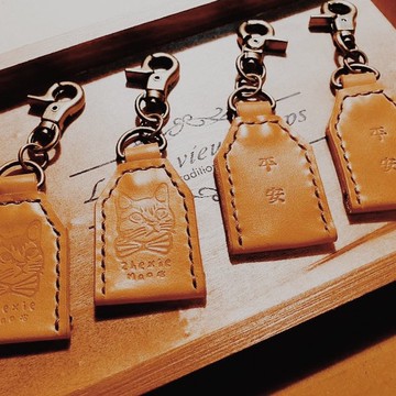 **皮革御守鑰匙圈【為您祈符】**上班帶著信念,在電腦旁放著這些貓【為您祈符】御守,任何煩人的文件都因相信而變容易,相信帶出信念,這些貓帶著自己的信念前進,也希望每個人能帶著自己的信念勇敢前進,打倒任何不開心!**商品規格**材質 : 植鞣革、五金扣尺寸 : 4.5 * 3.2 cm 選定刻字內容與刻字位置,請寫在訂單備註或訊息設計師喔。1. 下單時請詳細備註「刻字位置」與「刻字內容」2. 歡迎點擊「聯絡設計師」詢問與溝通3. 純手工刻印,會有些微誤差目前有以下中文文字可供選擇,一個鑰匙圈限印一組文字哦:1cm 最多可印 1 個字,0.5cm最多可印 2 個字1cm 的中文字體有以下﹔好、愛、發、吉、順https://live.staticflickr.com/65535/52583674802_e120433e62_h.jpg0.5cm 的中文字體有以下﹔發、吉、順財富、成就、錢多多、成功健康、歲月靜好、幸福、平安夢想、青春、生活、日子、旅行平權、風景、文化、藝術、設計完美、友情、愛情、愛人、旅人https://c1.staticflickr.com/5/4833/44102008080_08bc23a5a3_b.jpg如有英文文字客製化需求,請與設計師聯繫!這款商品可供【免費刻字】英文字體1. 下單時請詳細備註「刻字位置」與「刻字內容」2. 歡迎點擊「聯絡設計師」詢問與溝通3. 可客製壓印大小寫英文字母A-Z、數字0-9 ( 建議至多 3 個英文文字 ) 字數可事先與設計師溝通4. 字體高度約 5-6mm5. 純手工刻印,會有些微誤差英文字體參考圖如下https://live.staticflickr.com/65535/49896413843_e61877127c_c.jpg**包裝方式**因設計師崇尚環保,產品皆不過度包裝,包裝方式以紙袋包覆,使商品不受破壞。**注意事項**1. 我們每一件產品都是手工設計製作,難免會有些許差異,所以,每件皮革製品皆為獨一無二的。2. 每一塊皮革都擁有自己的生命,偶有生長紋、斑點、傷疤,此為自然現象,並非瑕疵,當然在製作前會盡力將挑選最好的部位製作產品,請放心。3. 商品實際顏色與照片可能會因不同裝置、螢幕解析產生些微色差,請以實際商品為主