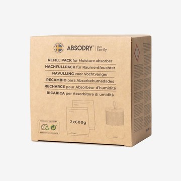 **商品說明:每一盒內有600g x 2包除濕劑補充包**.建議搭配: 乾乾好.Absodry series 6 最美免插電環保除濕器 每次使用1包 ,可維持3個月 乾乾好. Absodry large 美型大空間除濕器 每次使用2包,可維持3個月.本賣場僅有除濕劑,不含機器本身.無味無毒天然除濕劑,請安心選購https://www.youtube.com/watch?v=y5zrTbzwpBkhttps://diz36nn4q02zr.cloudfront.net/webapi/images/r/SalePageDesc/9297372/0.jpg?ts=135230https://diz36nn4q02zr.cloudfront.net/webapi/images/r/SalePageDesc/9297372/1.jpg?ts=135230**【商品規格】**https://diz36nn4q02zr.cloudfront.net/webapi/images/r/SalePageDesc/9297372/2.jpg?ts=135230重量:600g/包材質:天然氯化鈣**【常見Q&A】** Q:怎麼知道需要更換除濕劑呢?A:您可以觀看除濕器水位線,當水位達滿位時便可更換,或覺得放置一段時間後除濕效果已不太明顯,便可打開除濕器查看與更換。Q:除濕劑的水要倒在哪呢?A:請倒在馬桶或家中水槽即可。Q:除濕劑的水可以拿來澆花嗎?A:不建議用於澆花、打掃等用途,請直接丟棄。Q:萬一不小心碰到除濕劑液體,該怎麼清潔?A:請以清水沖洗乾淨即可。