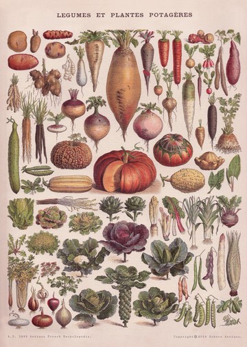 本館獨立印製海報 法國1860年古董百科圖鑑海報 常見蔬菜