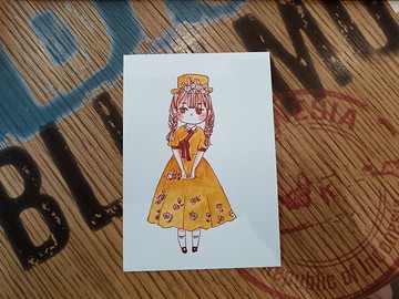 這幅原畫展現了一個優雅的場景:一位穿著西方服裝的女孩戴著帽子,手拿著玫瑰花。她的優雅和自信散發著迷人的氛圍,彷彿是從一幅古典油畫中走出來的。這幅原畫帶給人們的不僅是視覺上的享受,更是一份對美的讚嘆和對生活的熱愛。無論是作為裝飾品還是作為禮物,都能為您的生活增添一絲優雅和精緻。尺寸: 10cm x 15cm鋼筆淡彩