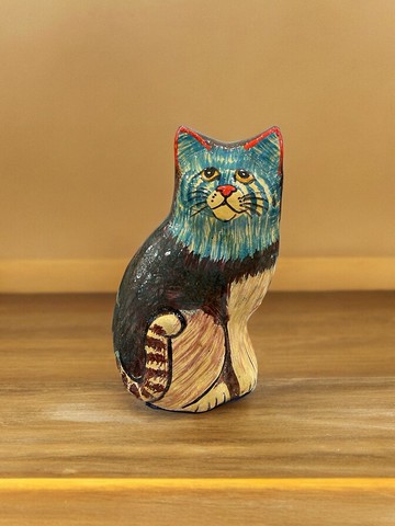 印度喀什米爾 手工漆紙器 彩繪貓咪擺飾 - 藍貓